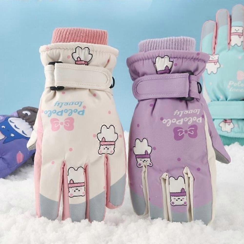 Children's Ski Gloves Girls Winter Warm Gloves Cartoon Fleece Lined Thick Water Repellent Five Finger Gloves Winter Gifts