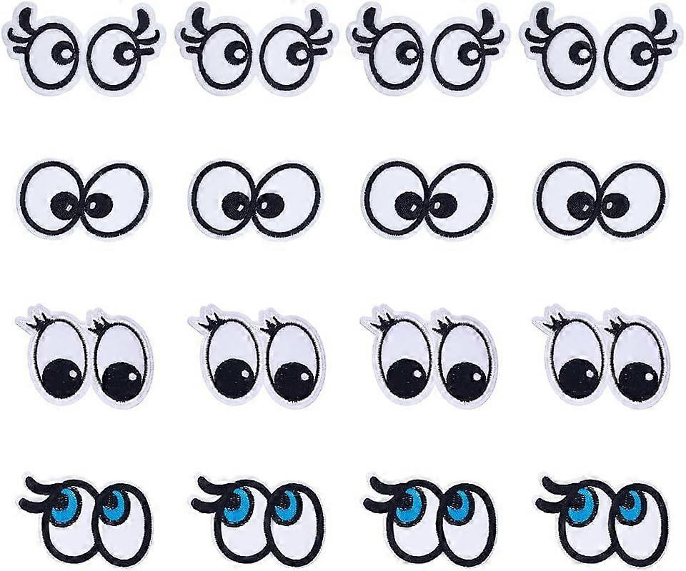 32Pcs 4 Styles Black White Eye Iron On Patches Eye Embroidered Patch Cartoon Round Eyes Appliques Sew Decorative Repair Patch for DIY Backpacks Hats C