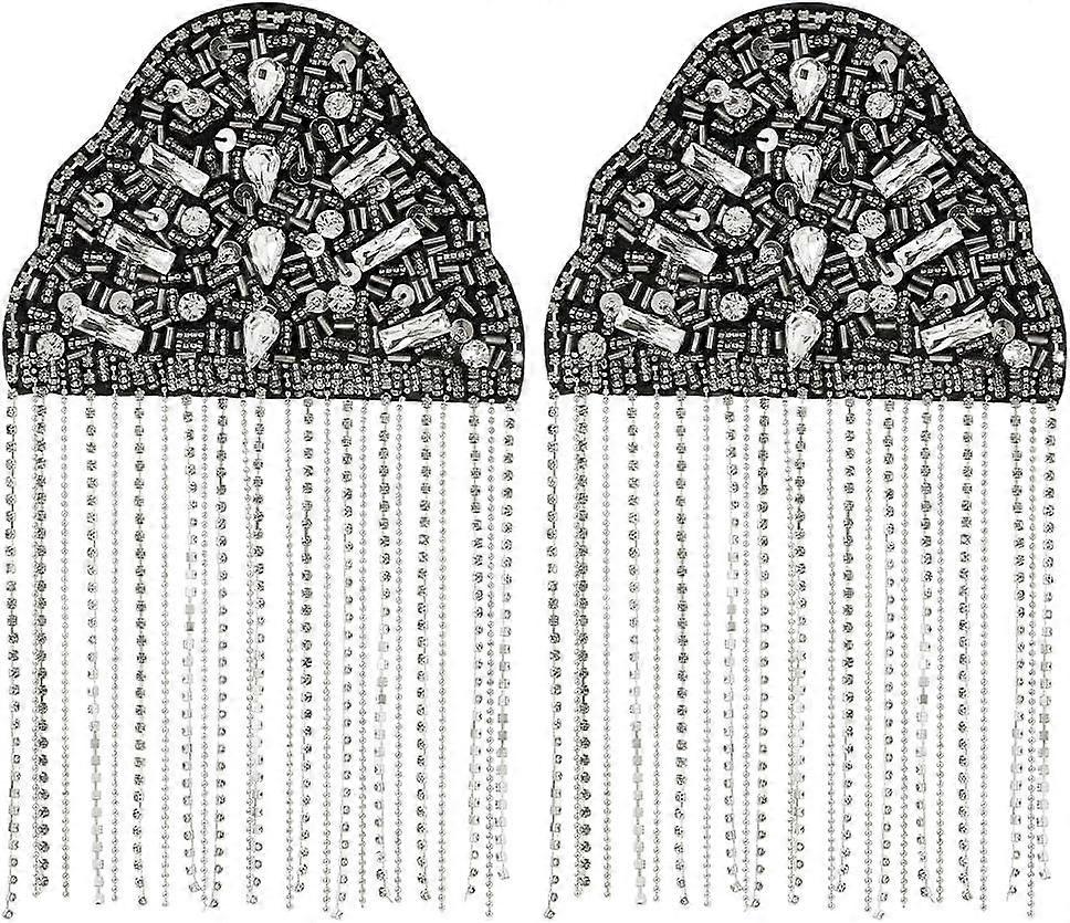 2Pcs Rhinestone Shoulder Badge Rhinestone Chain Tassel Shoulders Epaulettes Shoulder Brooch Pin Garment Accessories for Jackets Metal Punk Fringe Leng