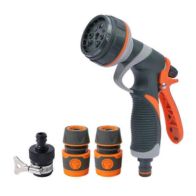 Garden watering gun nozzle, 8 adjustable positions with 4 interfaces Practical, fast, water-saving and environmentally friendly