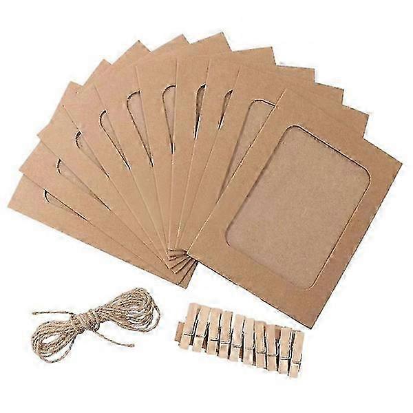10 Pcs / Set DIY Paper Photo Wall Picture Hanging Frame Album Rope Clip Set for Home Decor 3inch Brown