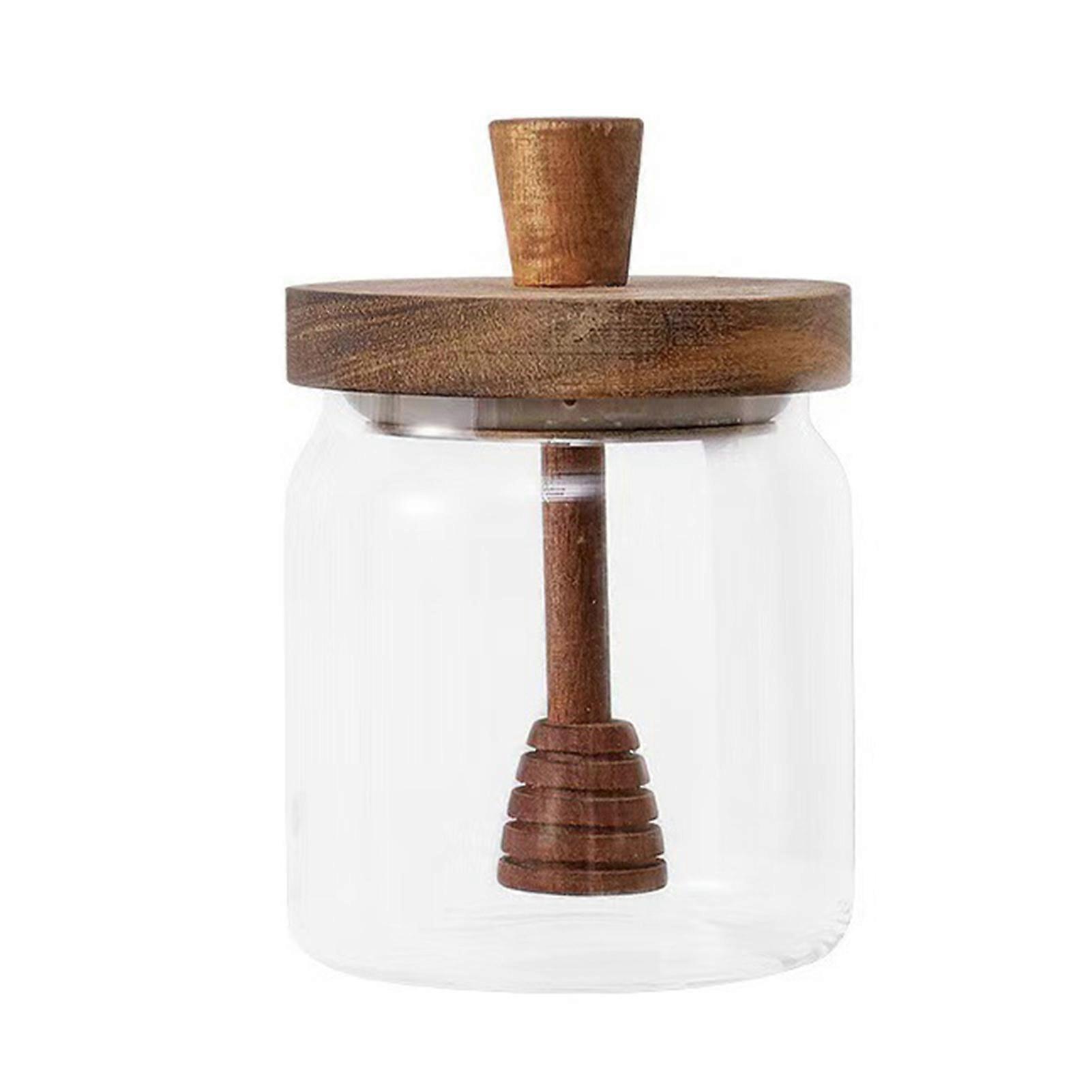 Glass Honey Jar 400ml Transparent Sealed Tank with Wooden Lid Dip Sticks Airtight Canister Syrup
