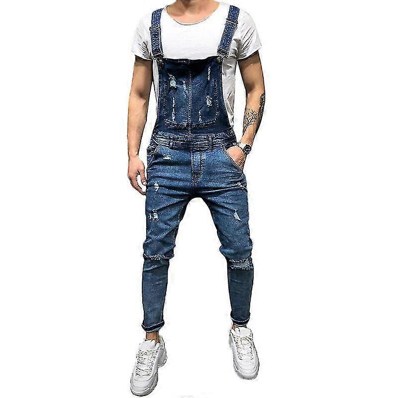 Luxora Men Ripped Dungarees Bib Jeans Pants Skinny Jumpsuit Overalls Trousers