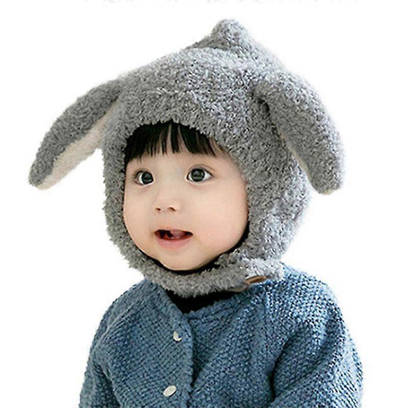 Luxora Infant Baby Unisex Cute Rabbit Fluffy Plush Hat With Button Winter Earplugs Cap For Boys Girls