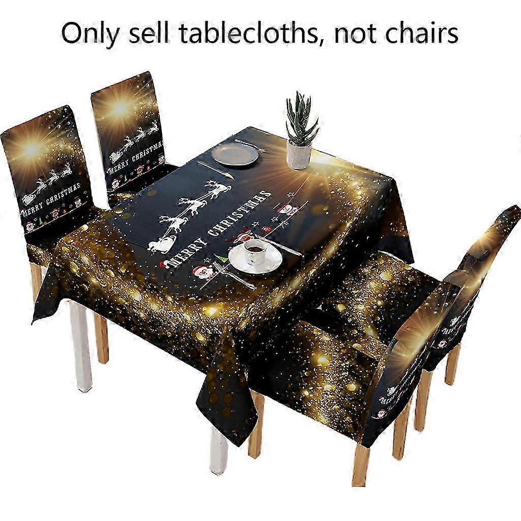 140x210cm Waterproof Christmas Tablecloth, Santa Jingle Bell Print Dining Table Cover
