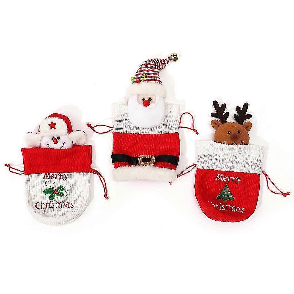 3Pcs Christmas Knit Dolls Candy Bag Decorations, Fabric Gift Bags Party Favor