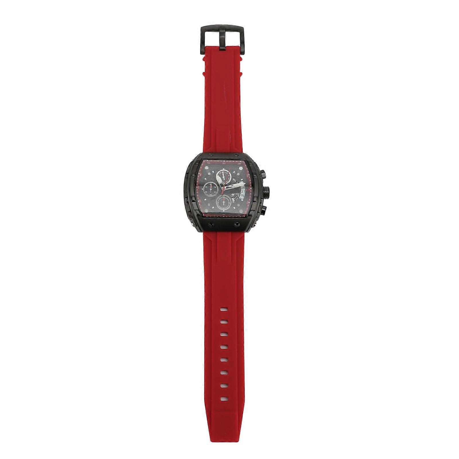 Men Dress Quartz Watch 3 Dials Luminous Silicone Strap Black Red