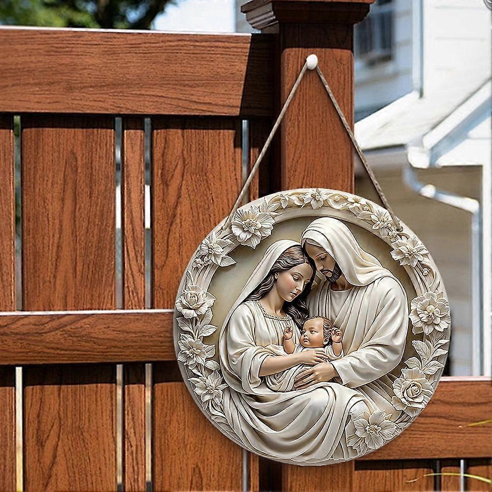 Professional 2D Modern Family Pray Theme Round Wooden Door Hanging User-friendly Sign Wall Faith Decor Baptism