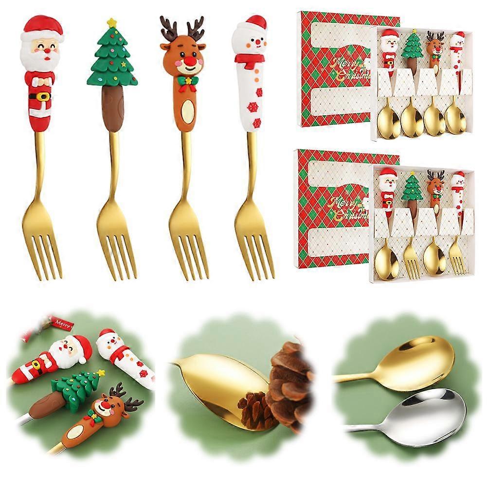 Durable 4Pcs Classic Cutlery Elk Snowman Sets Forks Xmas Multi-functional Tree Santa Christmas Creative Spoon