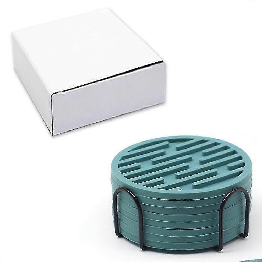 8Pcs Silicone Coasters Set with Metal Holder 10cm Round Draining Heat Resistant Non-Slip Mats p