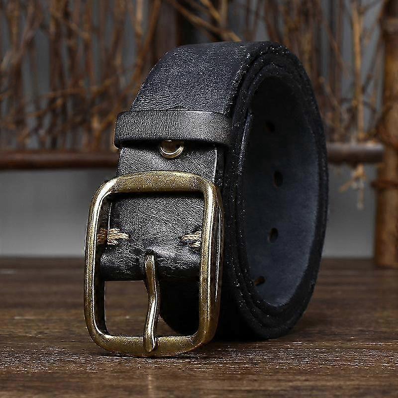 Distressed Leather Belt for Daily Casual Wear with Retro Buckle