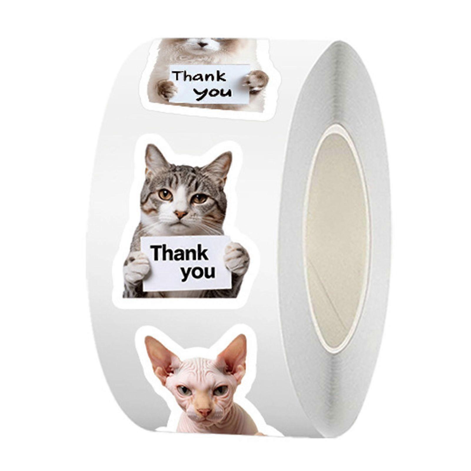 Cute Dog Cat Thank You Stickers Funny Puppy Graffiti Stickers Waterproof PVC Stickers for Phone Laptop Fridge Envelopes