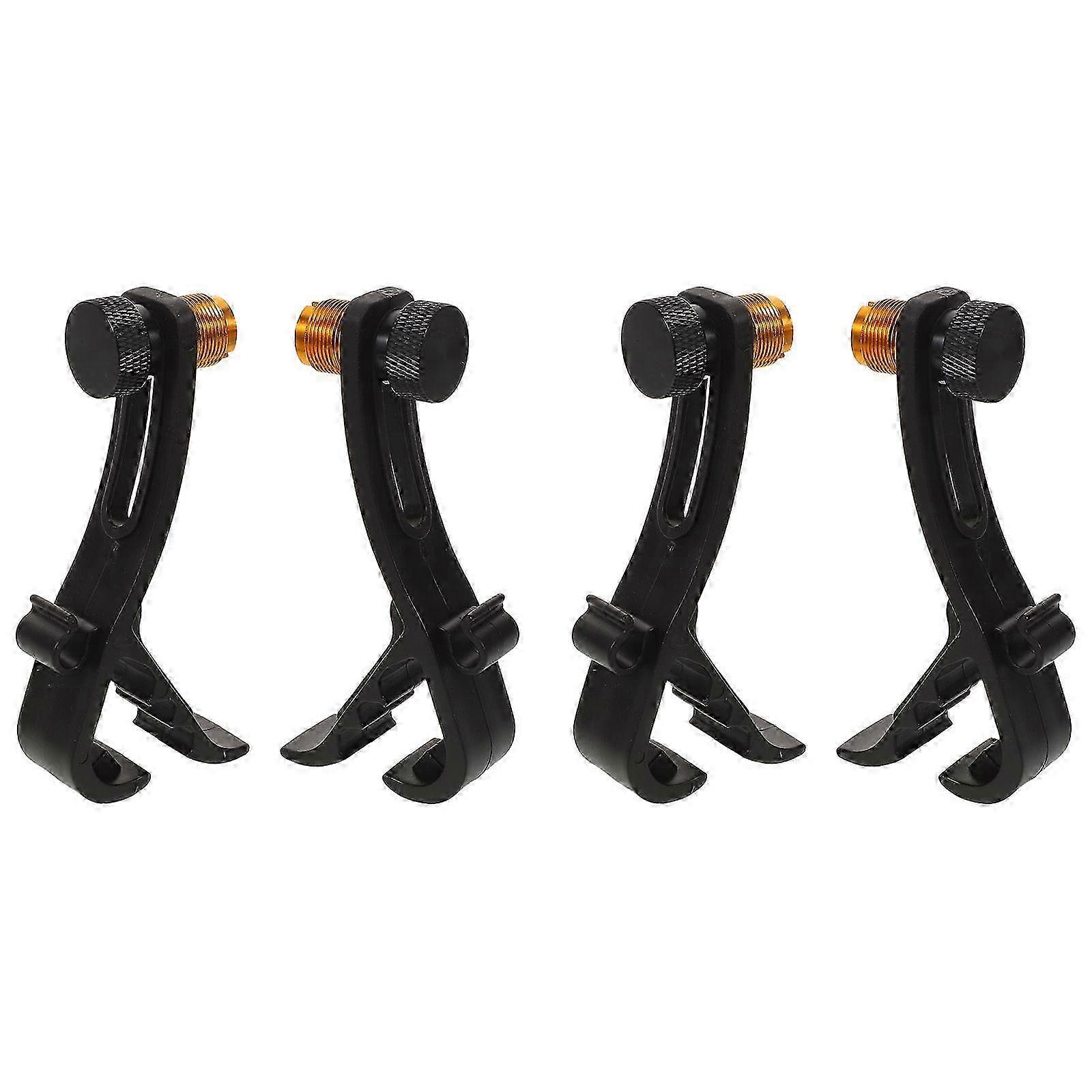 4pcs Drum Mic Clips: Adjustable Microphone Securing Clamp Mounts - Black Metal Attachment Clamp - Mi p