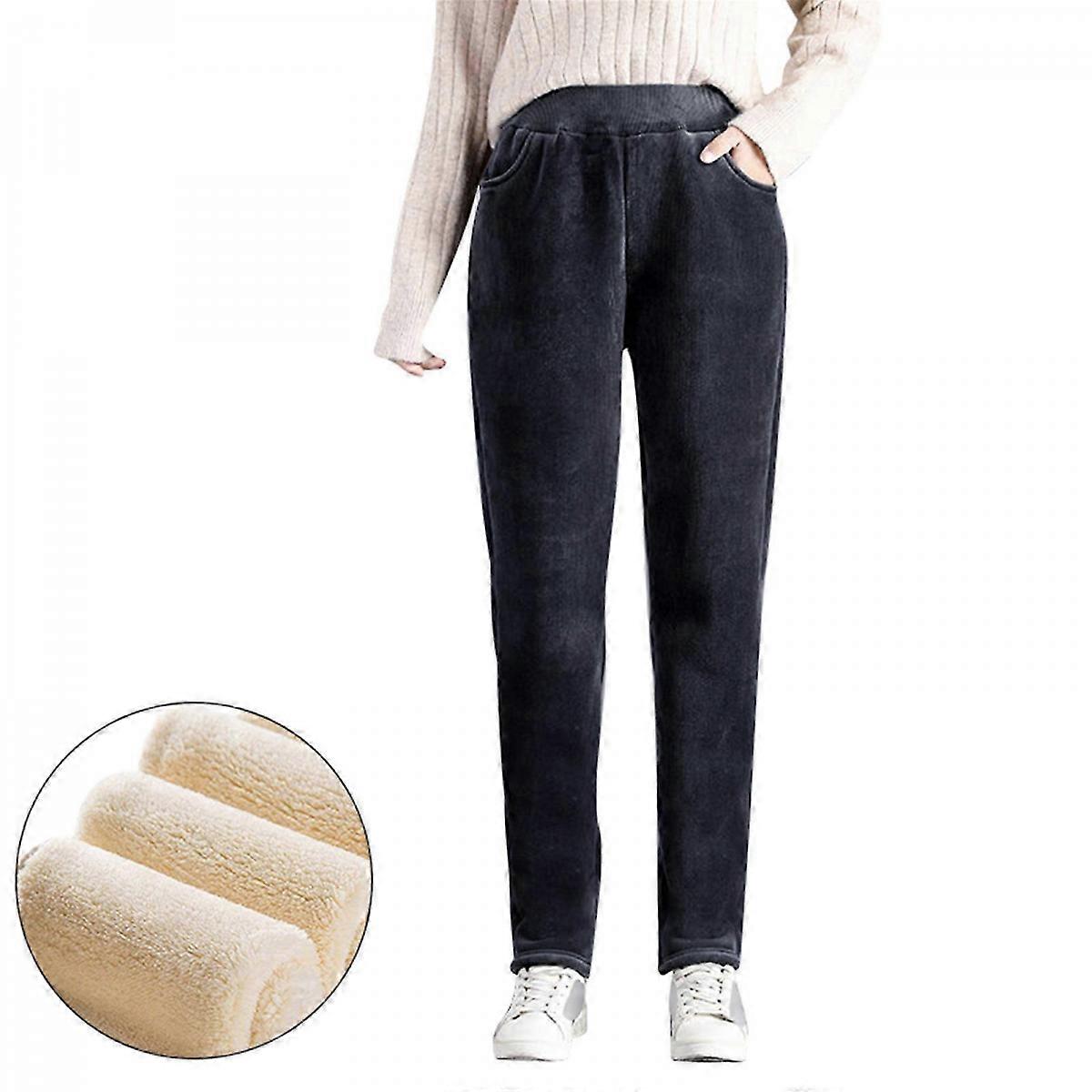 Womens Winter Sweatpants High Waist Stretchy Cashmere Jogger Pants Warm Thermal Corduroy Pants Loose Pants 2 Colors brown L