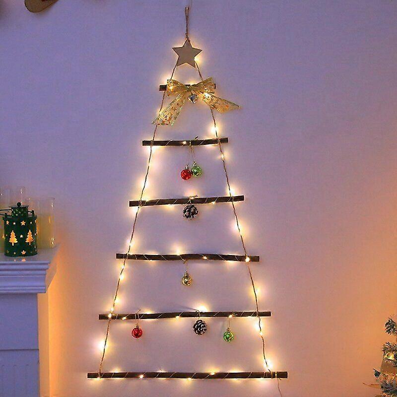 LED Wall Christmas Decor Lights 6M LEDs Warm White Santa Claus Ladder Felt Pinecone Indoor Mall Holiday Ornaments