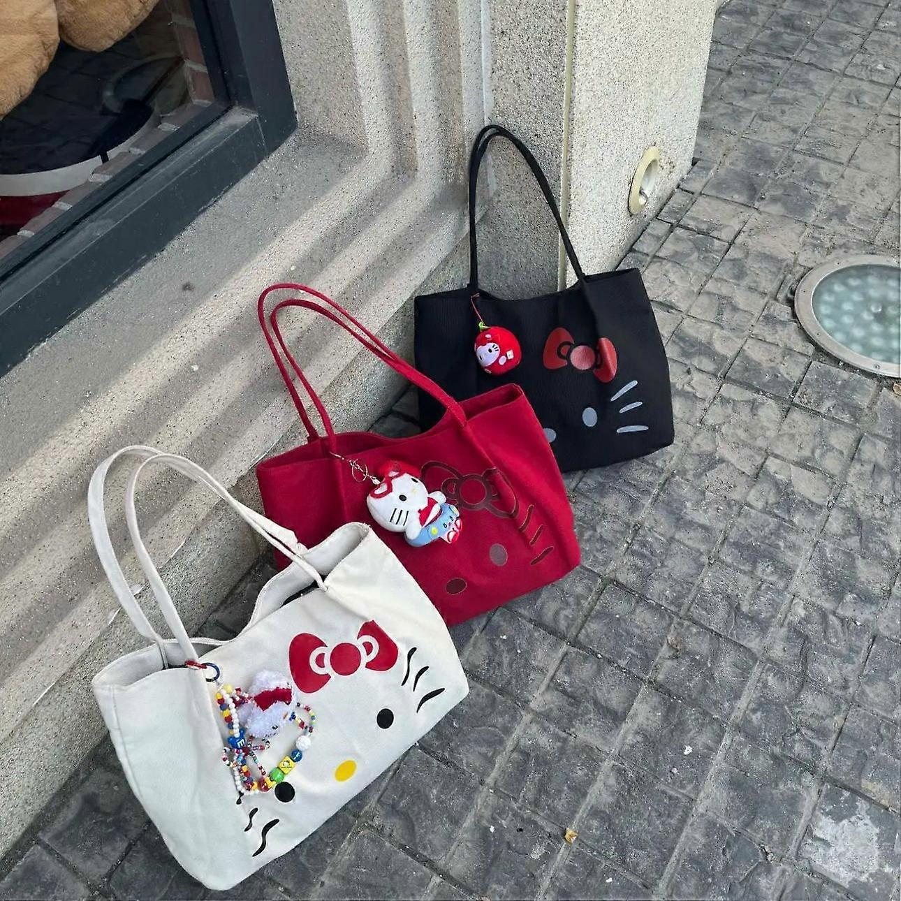 Hot Miniso Cute Kt Canvas Bag Girl'S Heart Large Capacity Handbag Shoulder Bag, Portable Commuting Cartoon Printed Tote Bag