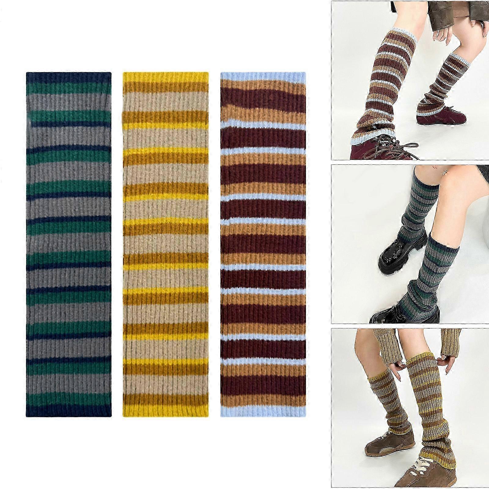 Stripe Leg Warmers for Women Girls Lolitas Leg Warmer Knit Long Socks Gothic Harajuku Leg Cover Middle Tube Stockings gray green stripes