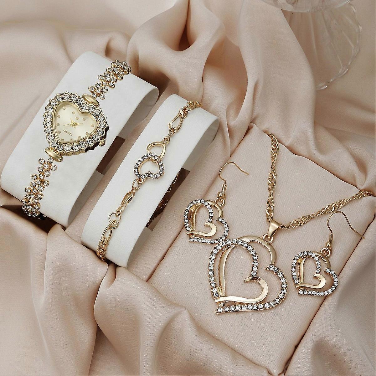5pcs/set Casual Fashion Quartz Watch & Heart Rhinestone Jewelry Set Gifts For Women Luxury Brand Design Women Montre Femme Reloj