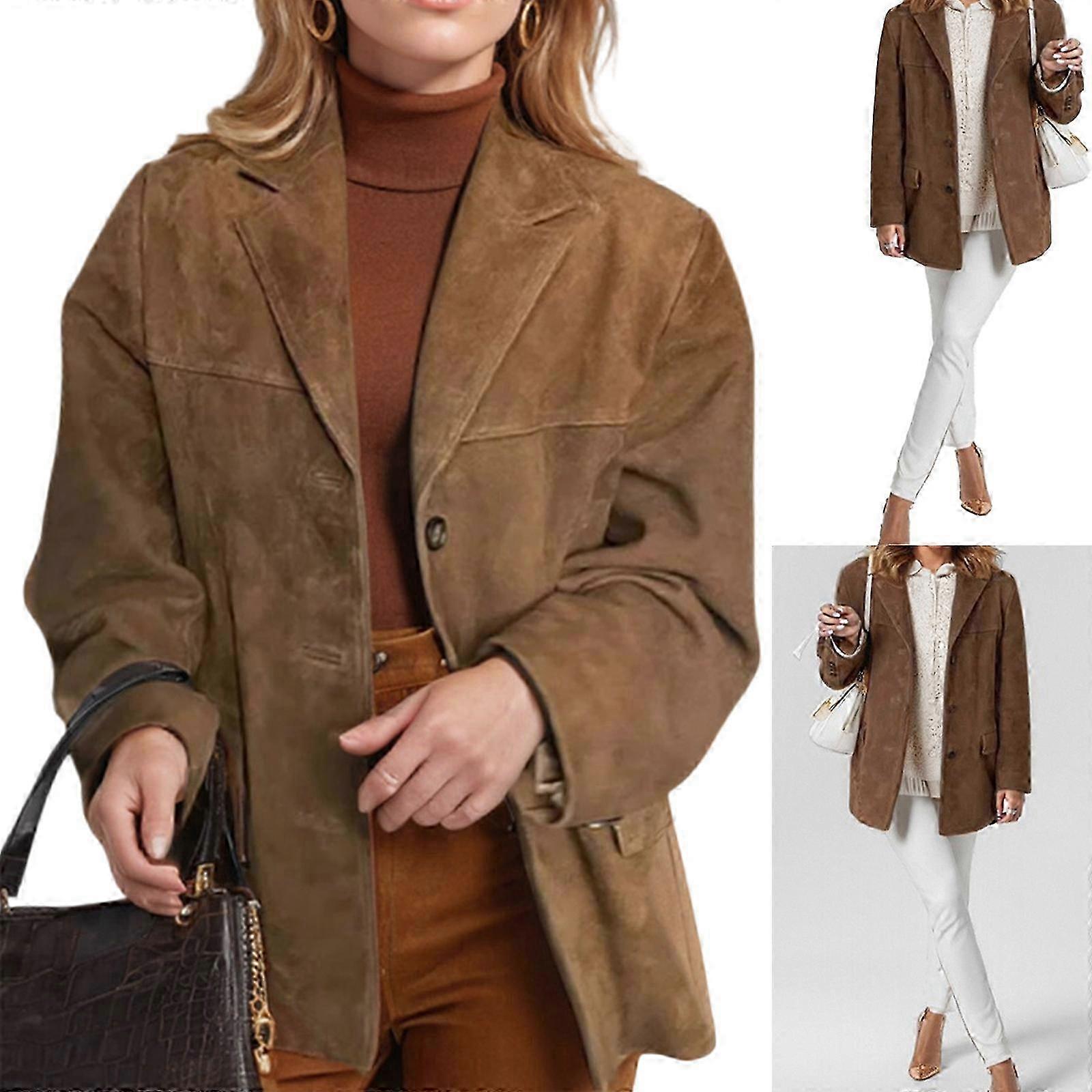 Women Single Breasted Faux Suedes Long Sleeve Work Office Suit Jackets Notched Lapel Collar Outerwear Business Coat S Khaki
