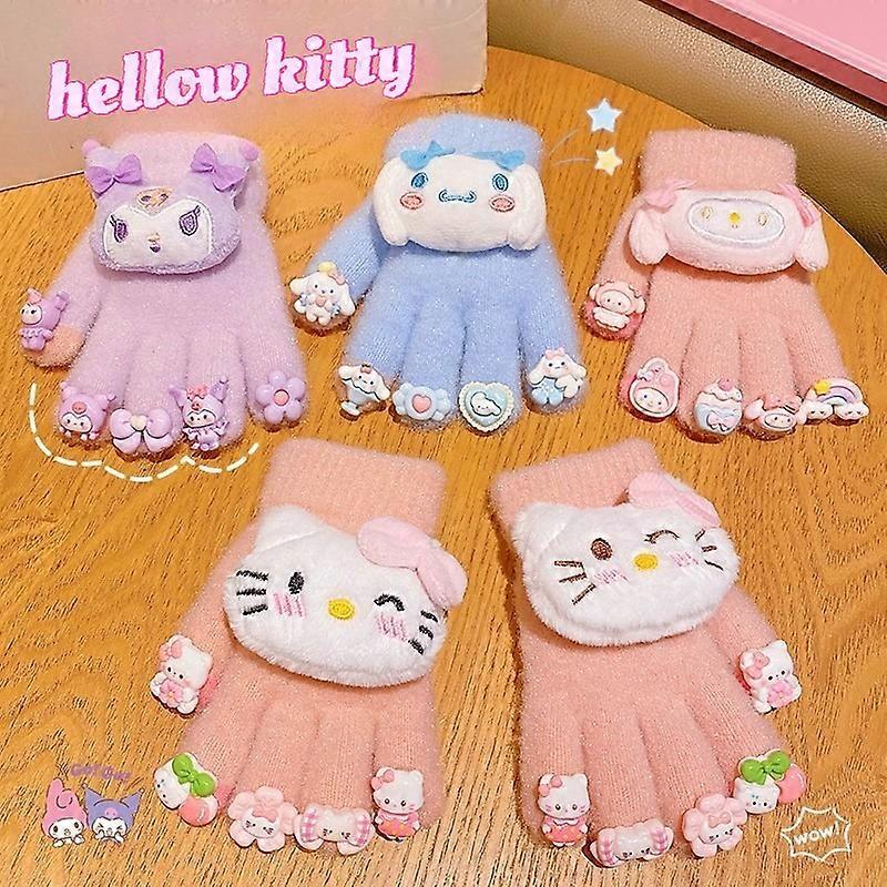 Hello Kitty Children Gloves Cute Girls Plush Toe GlovesNew Kuromi Fleece Warm Gloves Windproof Frostbite Proof Sanrio