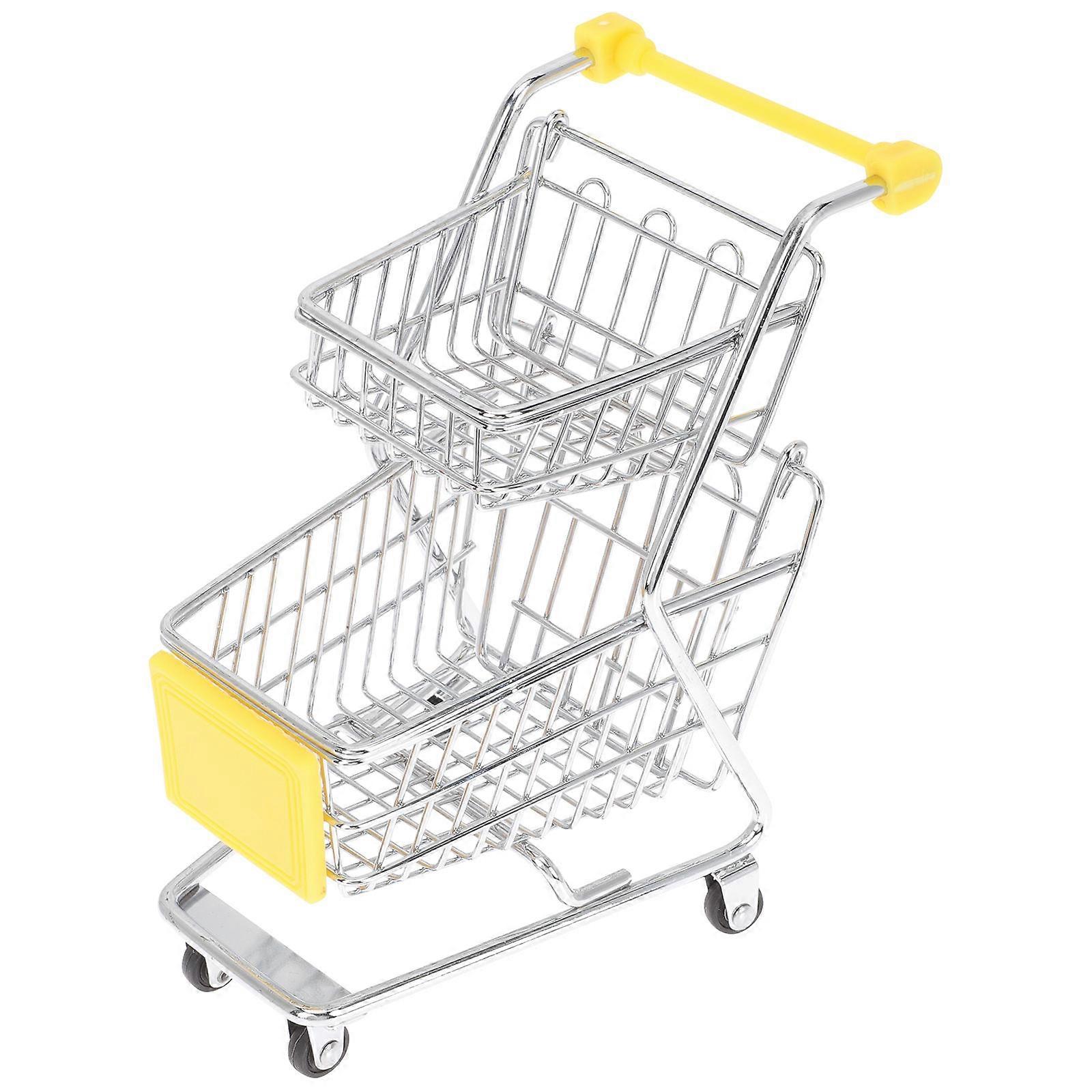 Mini Shopping Cart Model Toy for Desktop Decor 4Pcs Yellow Supermarket Trolley