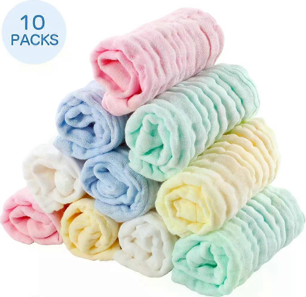 Baby Washcloths, 10 Pieces Baby Muslin Washcloths Baby Towels Soft Newborn Baby Face Wipes Organic Cotton Baby Wipes 25 * 25 CM