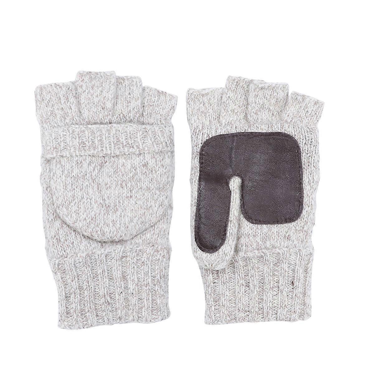 Sports Gloves for Riding 2Pairs Plus Thick Knitting Half Finger Gloves Beige
