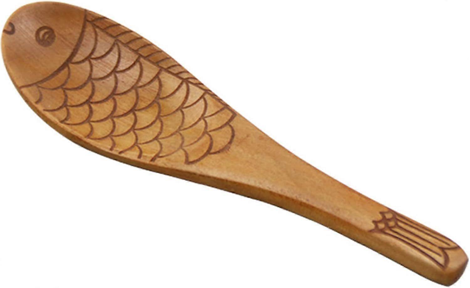 Japanese wooden fish-shaped spoon with hand-carved texture for soup, rice, shovel, kitchen utensils, wooden tableware