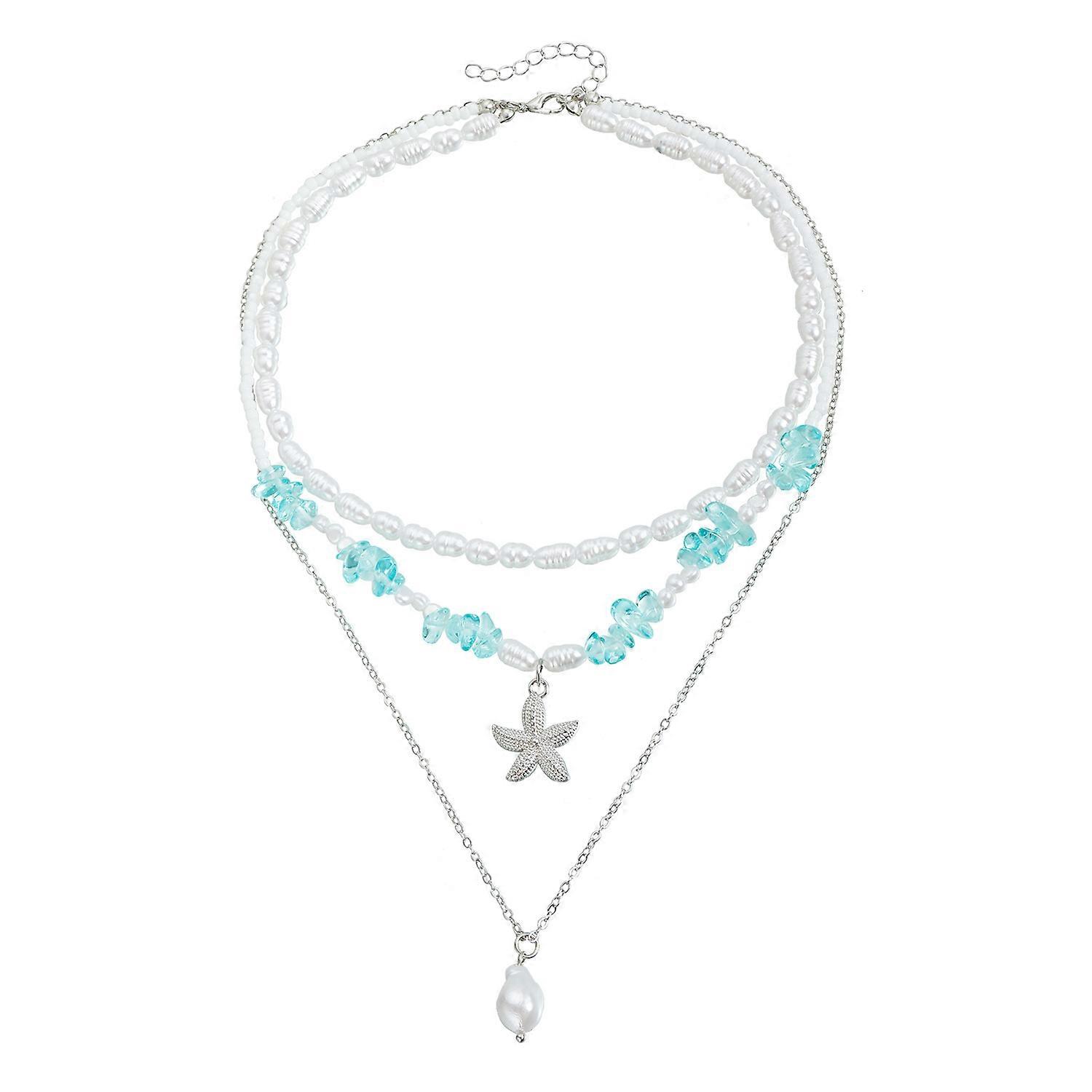 Bohemian Beach Pearl Necklace for Women Summer Ocean Style Seashell Starfish Pendant Choker Earings Vacation Party Jewelry Set