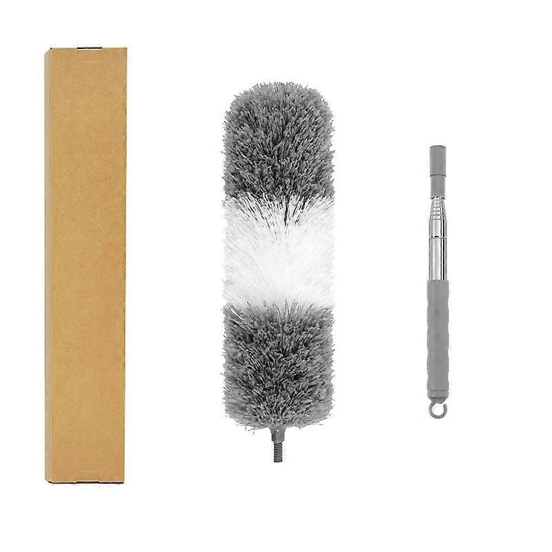 1-meter pole + gray-white duster head + cardboard box for dusting sofas and beds, retractable duster for household cleaning, feather duster