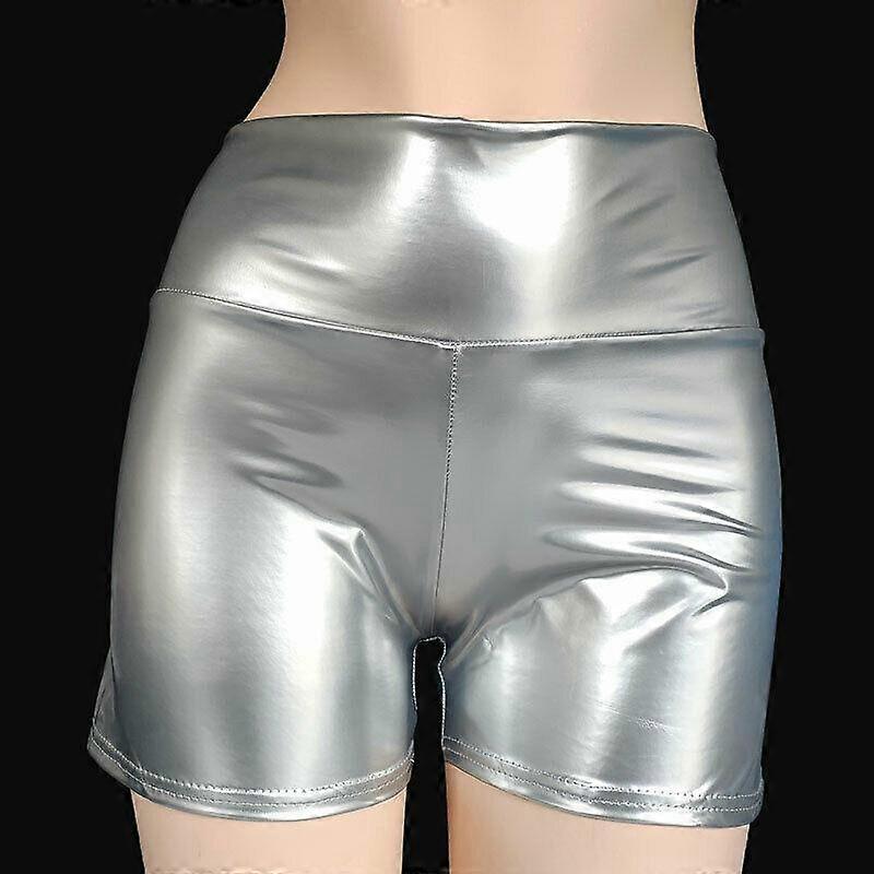 Lady Wet Look Shorts PU Leather Shiny Stretch Hot Pants High Waist Slim Fit Chic