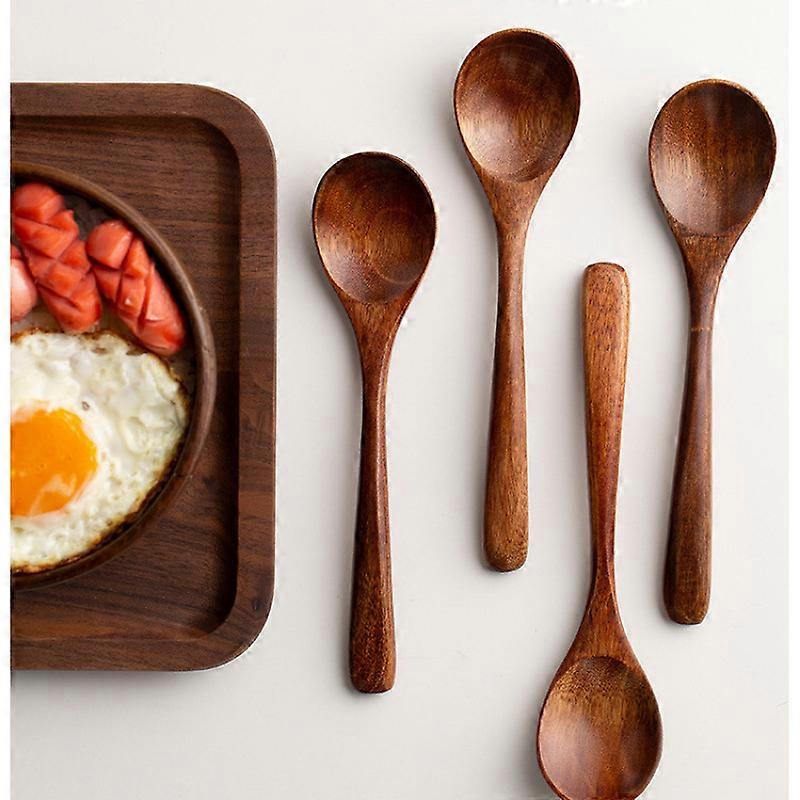 4-piece set (18.5*4.2 cm) of nanmu wood, coffee-colored, Japanese style small wooden spoons, solid wood rice spoons, wooden spoons,