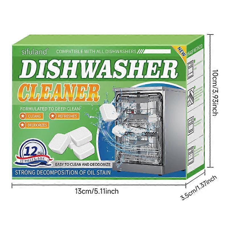 12pcs Green Dishwasher Effervescent Tablets, Washing Machine Tub Cleaner, Dishwasher Cubes, Machine Disinfectant Effervescent Tablets for