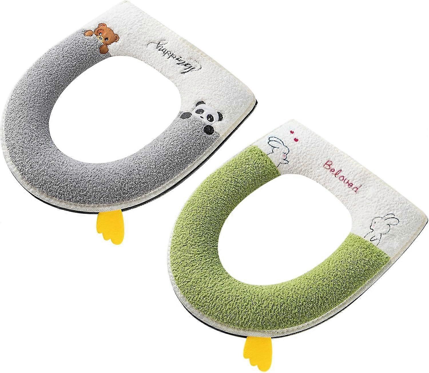 Soft and Thick Toilet Seat Cover, 2-Piece Toilet Seat Cushion with Handle, Winter Toilet Seat Cushion to Keep Warm for Oval Toilet Seats, 38x43cm