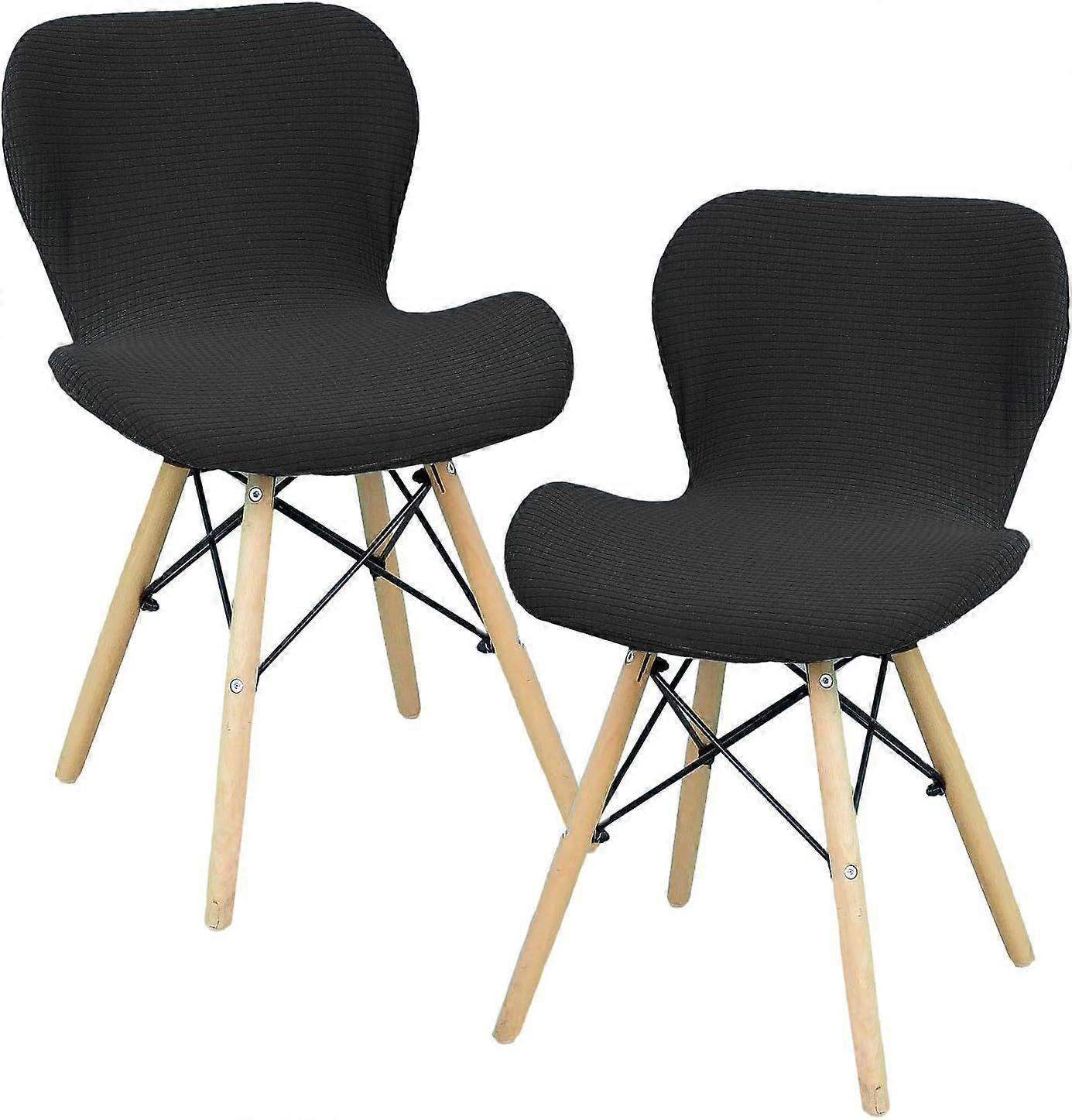 Set of 2 stretchable bar stool covers with backrest for dining room, kitchen, outdoor use (black)