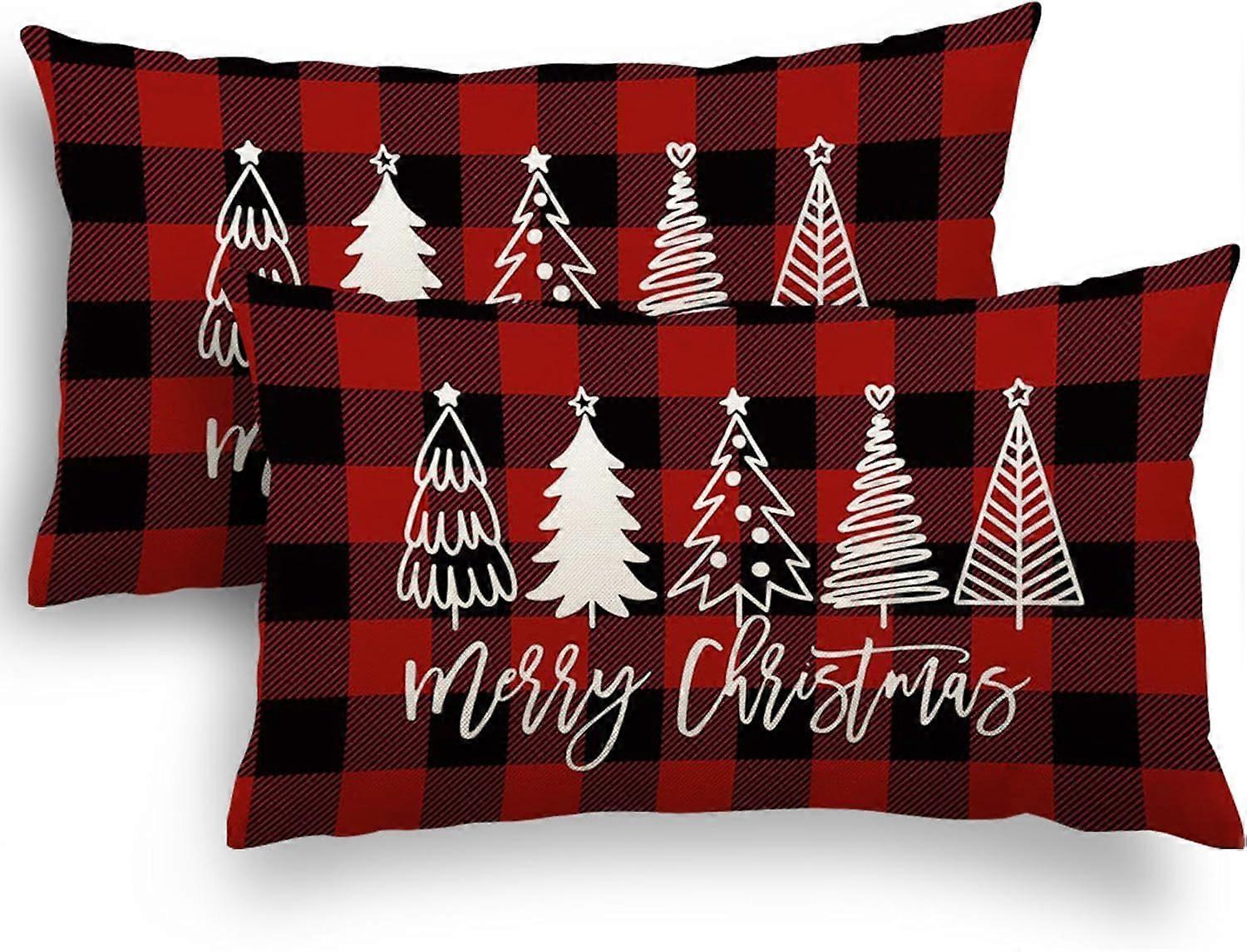 Christmas Cushion Cover 30x50 Set of 2 Cushion Covers 30x50 Snowflakes Christmas Tree Decorative Linen Pillowcase for Christmas Decoration 30 x 50 cm