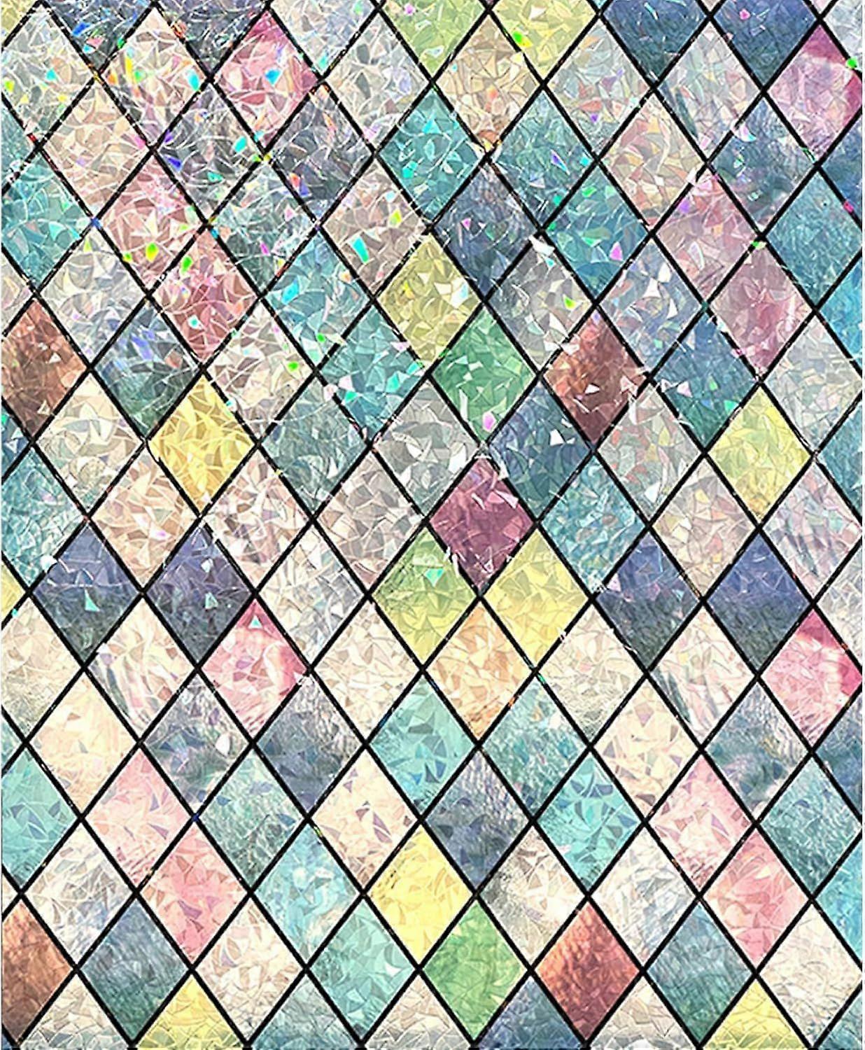 Stained glass window film, 30*200cm, Colored glass stickers, Static cling, Reusable PVC, Thick privacy window film, for Home, Office, School