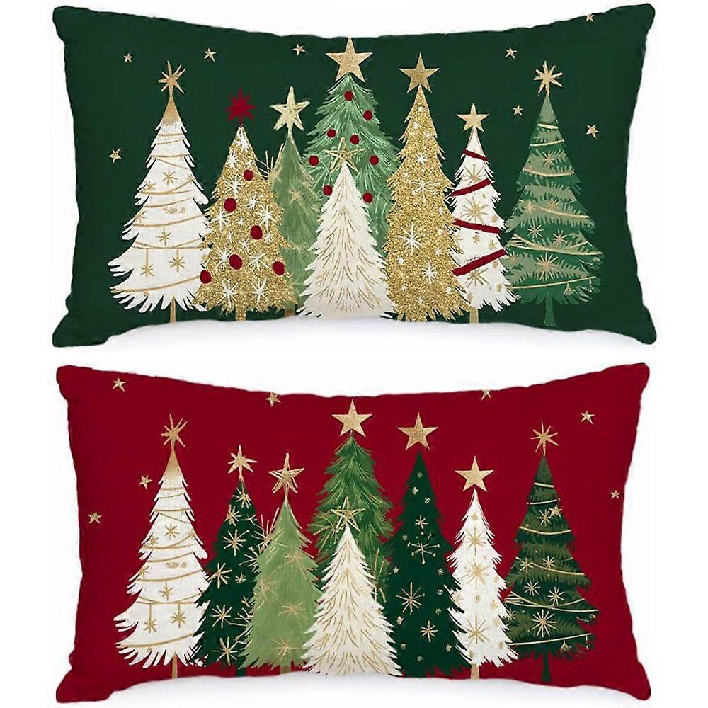 Set of 2 Santa Claus Christmas Cushion Covers 30x50 cm, Christmas Tree Pillowcases, Decorative Pillow Set for Living Room, Bedroom, Bed, Sofa Decorati