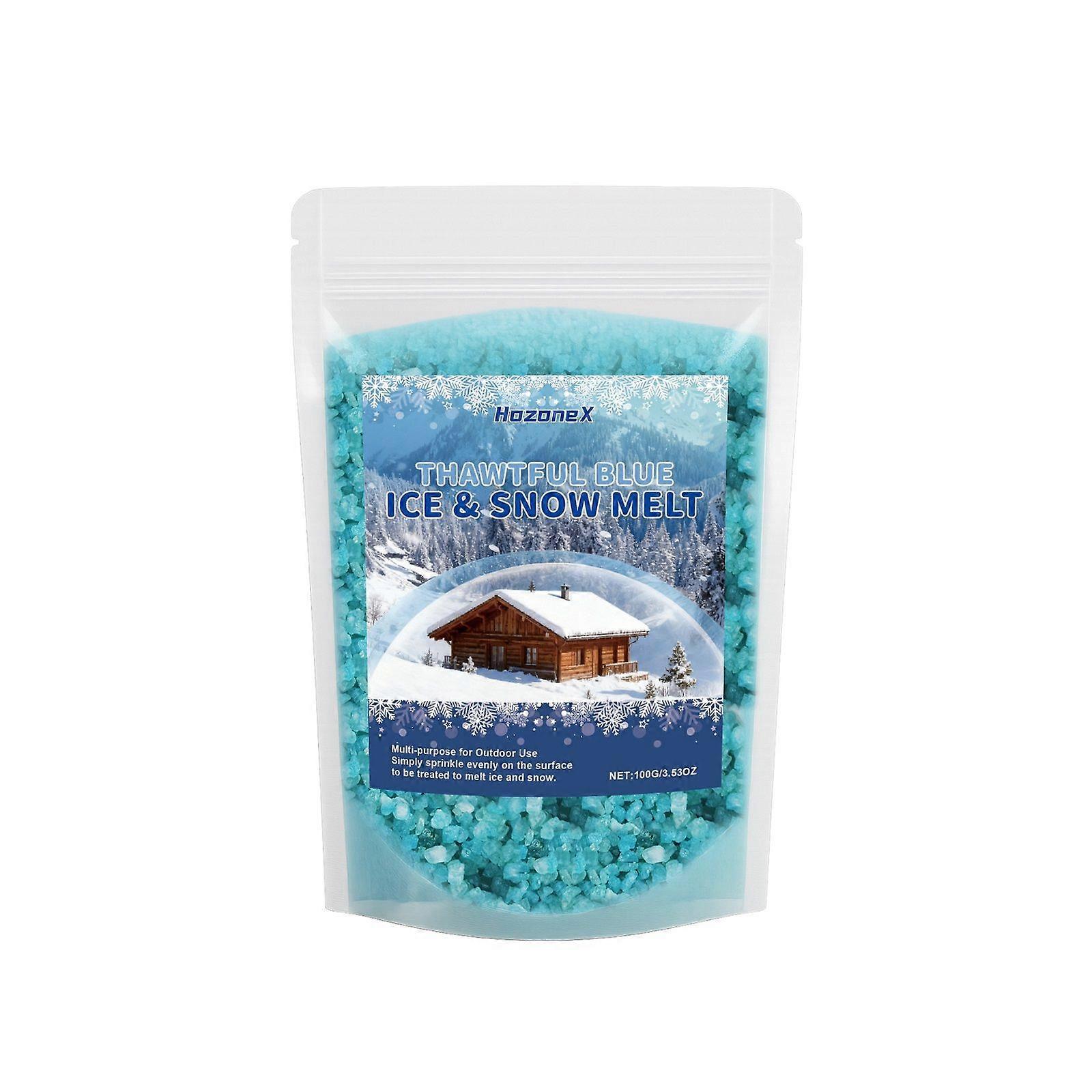 Thawtful Blue Ice & Snow Melt 100g Snow Melt, Rock Salt, Driveway & Sidewalk Salt for Ice, Blue Granular Rock Salt, Melts to 16F (27C)