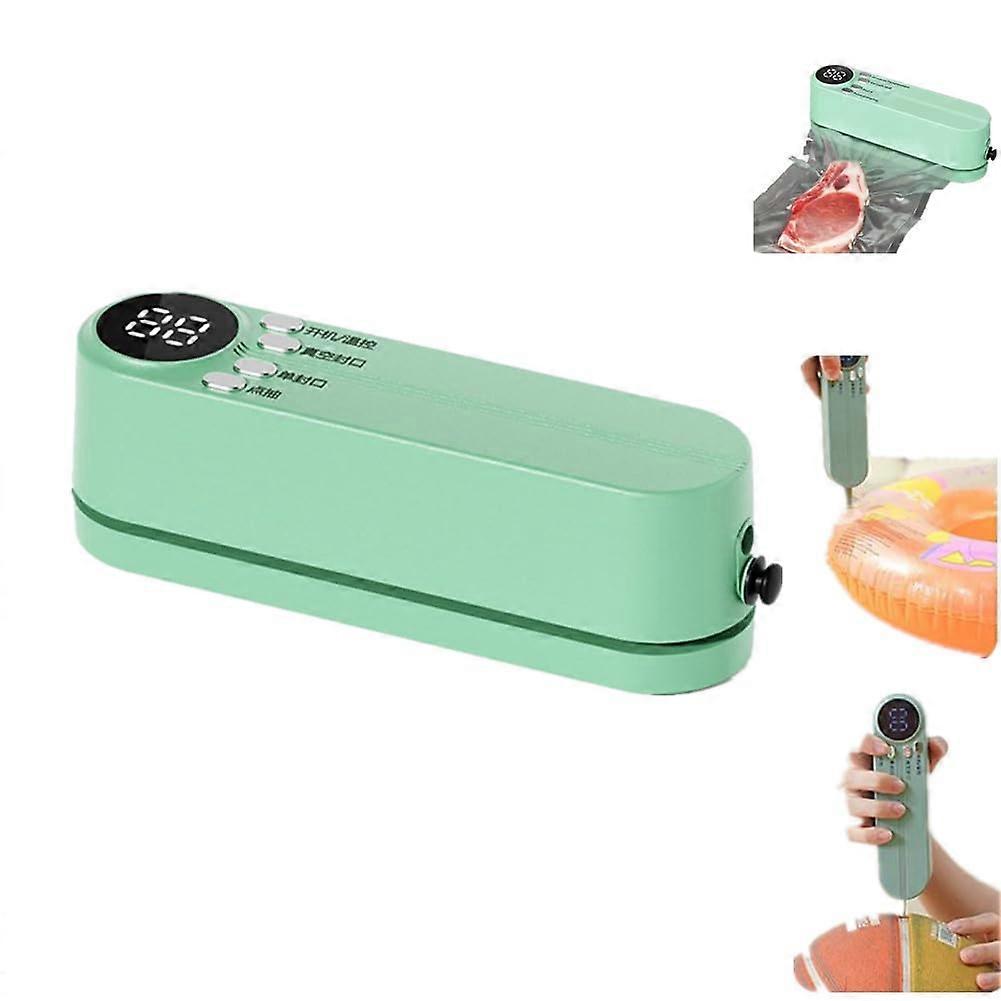 Mini Food Vacuum Sealer Machine with Digital Display, Cordless Rechargeable Heat Sealer for Chips and Snack Bags, 1pcs Green