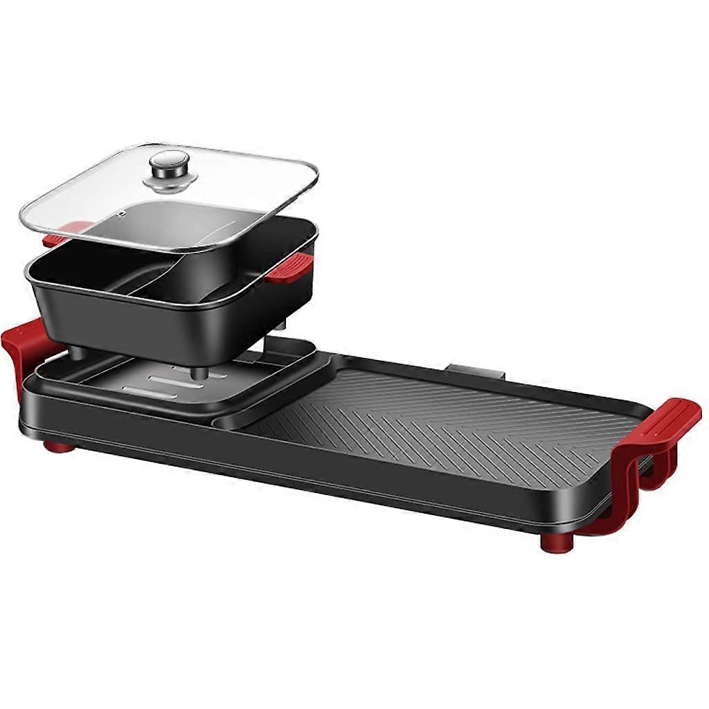 Electric Hot Pot Grill with FiveSpeed Dual Control, Large Capacity, Glass Lid, Easy Clean Design