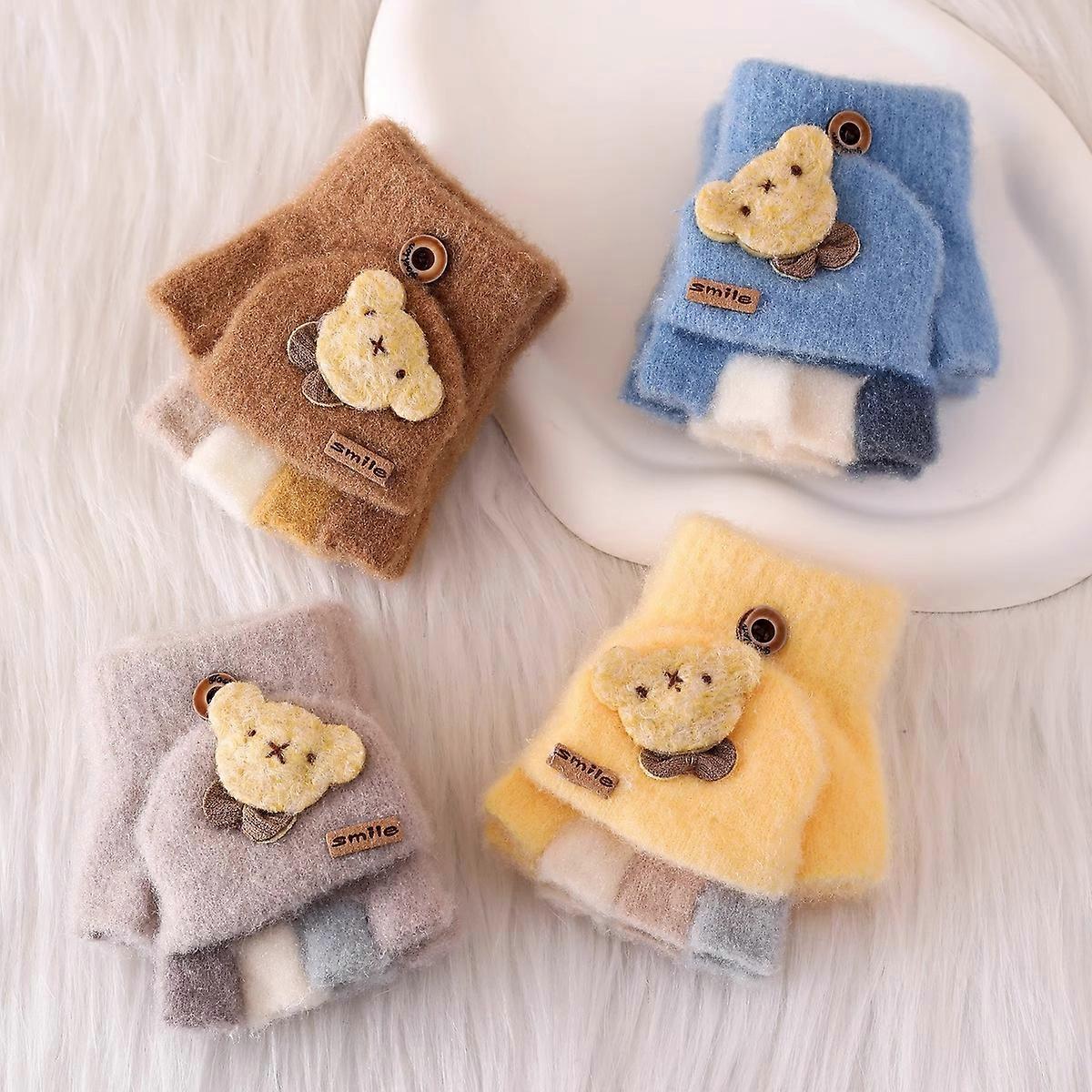Children's Gloves Cartoon Winter Bear Half-finger Flap Gloves Soft and Warm Autumn and Winter Items Kids Gloves MINISO