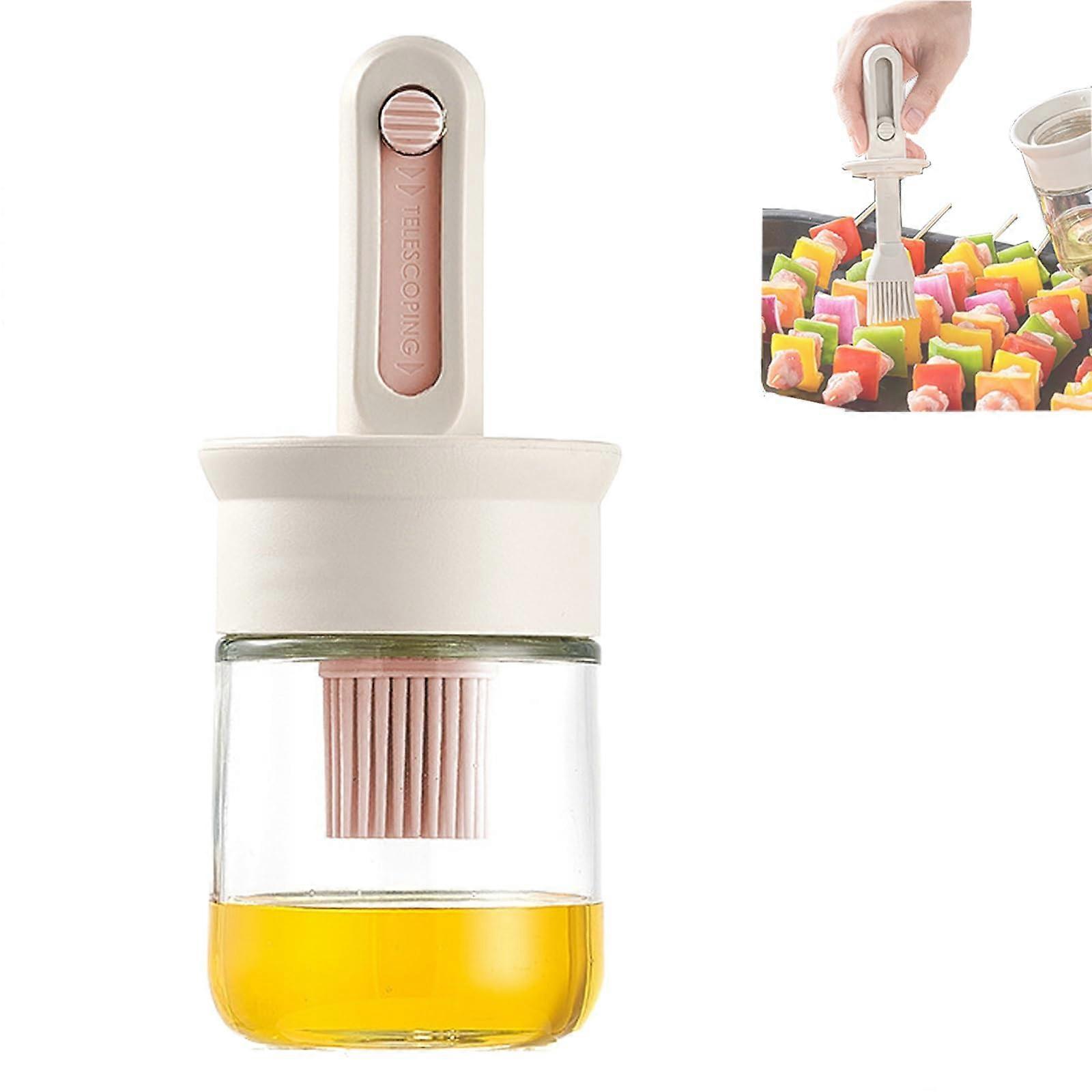 Silicone Oil Brush Bottle with Retractable Handle Glass Dispenser for BBQ Baking and Basting