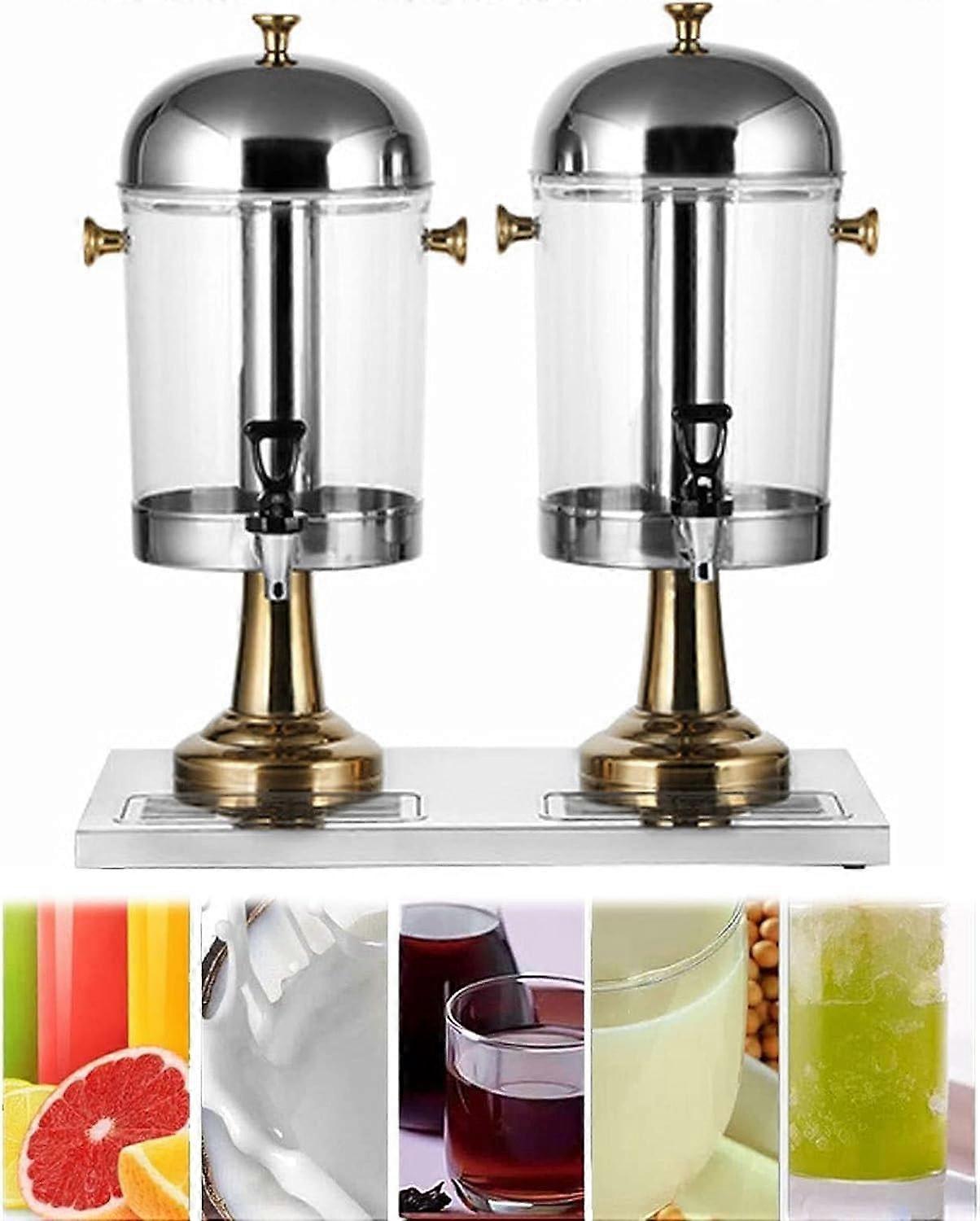 Stainless Steel Beverage Dispenser with Tap, IceCore Cooling Tube, 16/24L Gold Double Head for Restaurant Buffet
