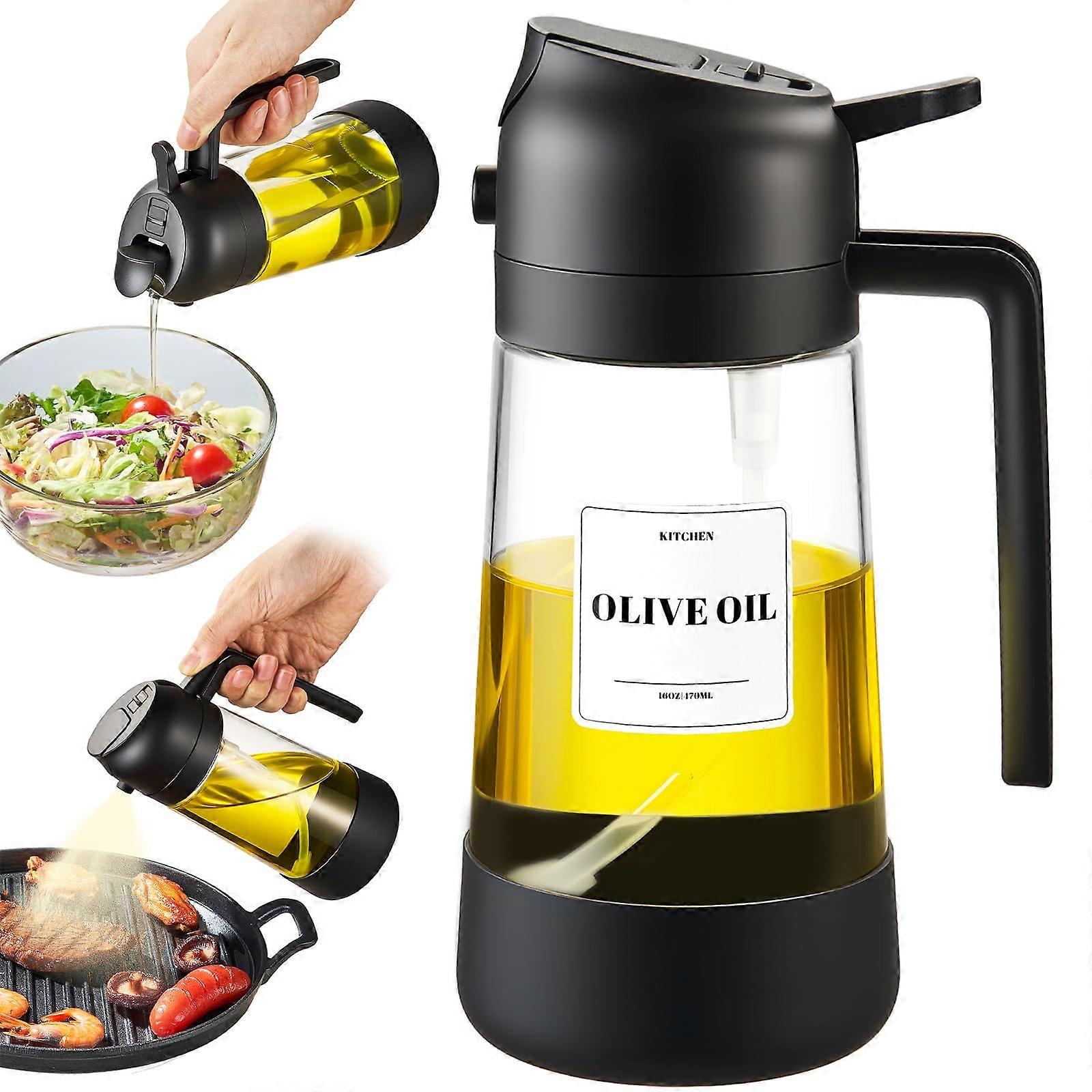 2 in 1 Olive Oil Dispenser and Sprayer 500ml Glass Bottle with Silicone Base for Cooking BBQ Salad