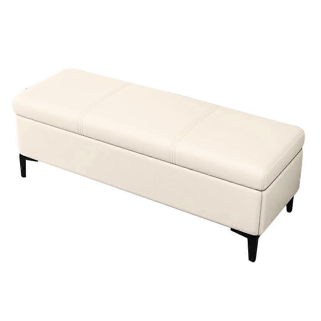 Storage Ottoman Bench with Legs, Tufted Rectangular Shoe Bench for Bedroom, Entryway, Living Room, Beige 120cm