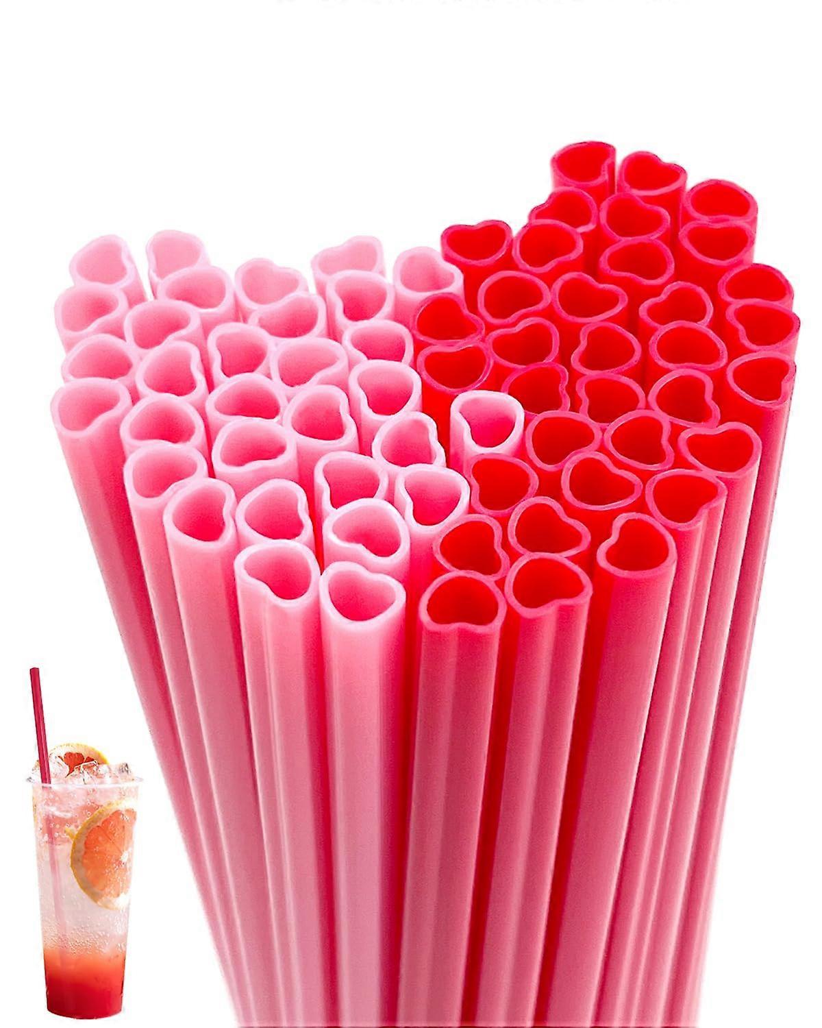 50PCS Heart Shaped Straws Red and Pink Disposable Plastic for Valentine's Day Wedding Parties