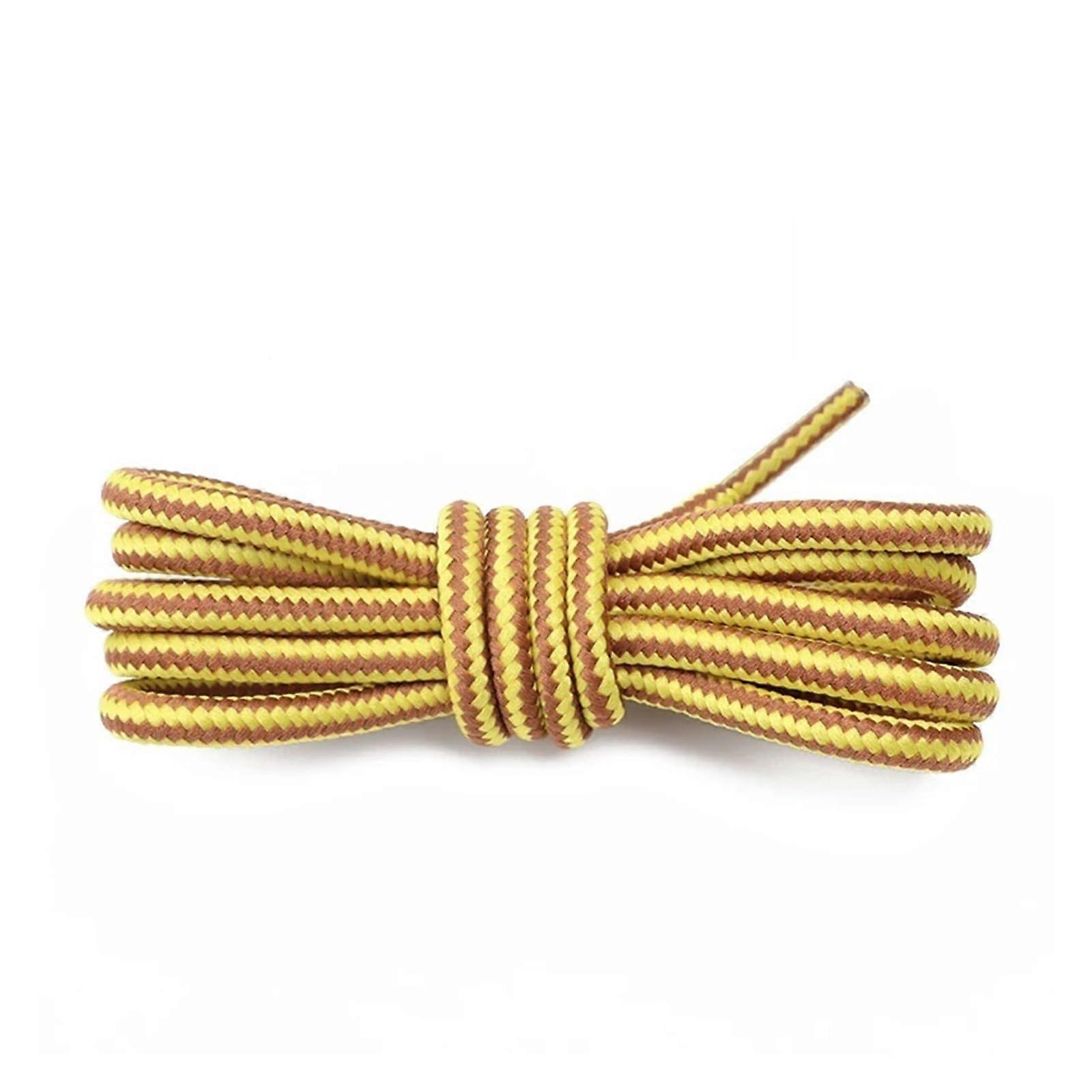 Hiking Boots Round Shoelaces Striped TwoTone Laces for Outdoor Trekking Sneakers Golden Yellow Brown 70cm