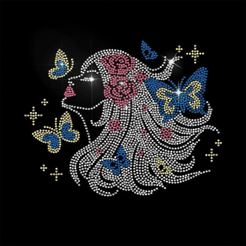1 Pc Butterfly Lady Rhinestone Iron on Hotfix Transfer Decal Bling DIY Patch Clothing Repair Applique T-Shirt Vest Shoes Hat Jacket Decor Clothing DIY