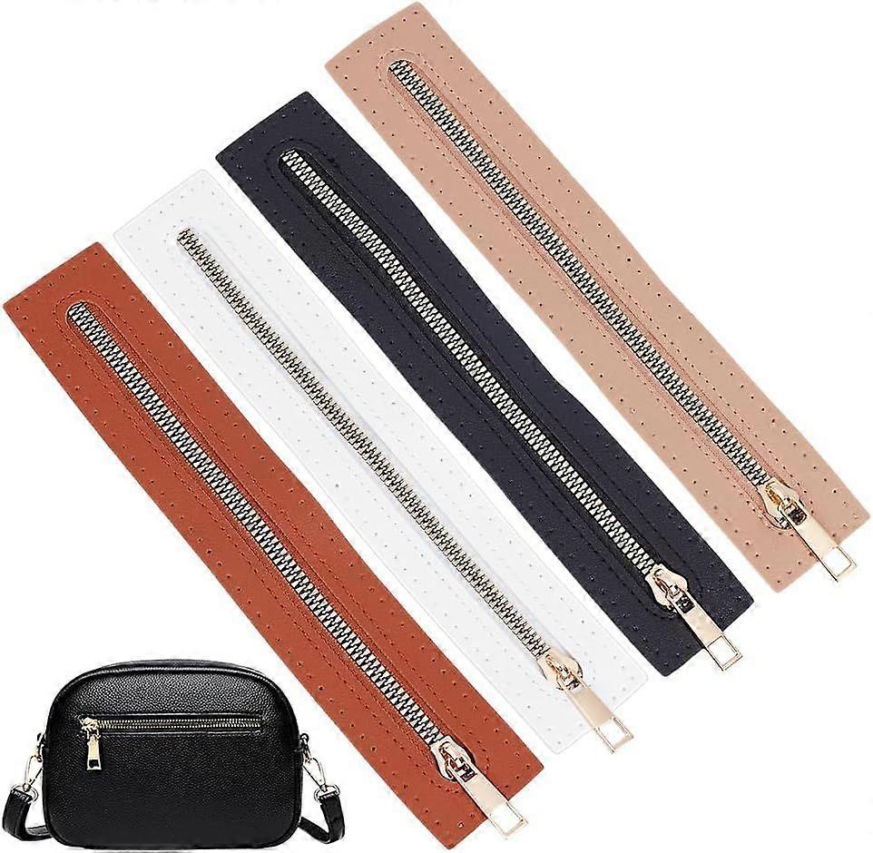 4 Colors PU Leather Zipper for Sewing 9.25 Inch PU Leather Bag Zipper Frame with Zipper Puller for Woven Bag Purse Sewing PU Leather Zipper Sewing Acc